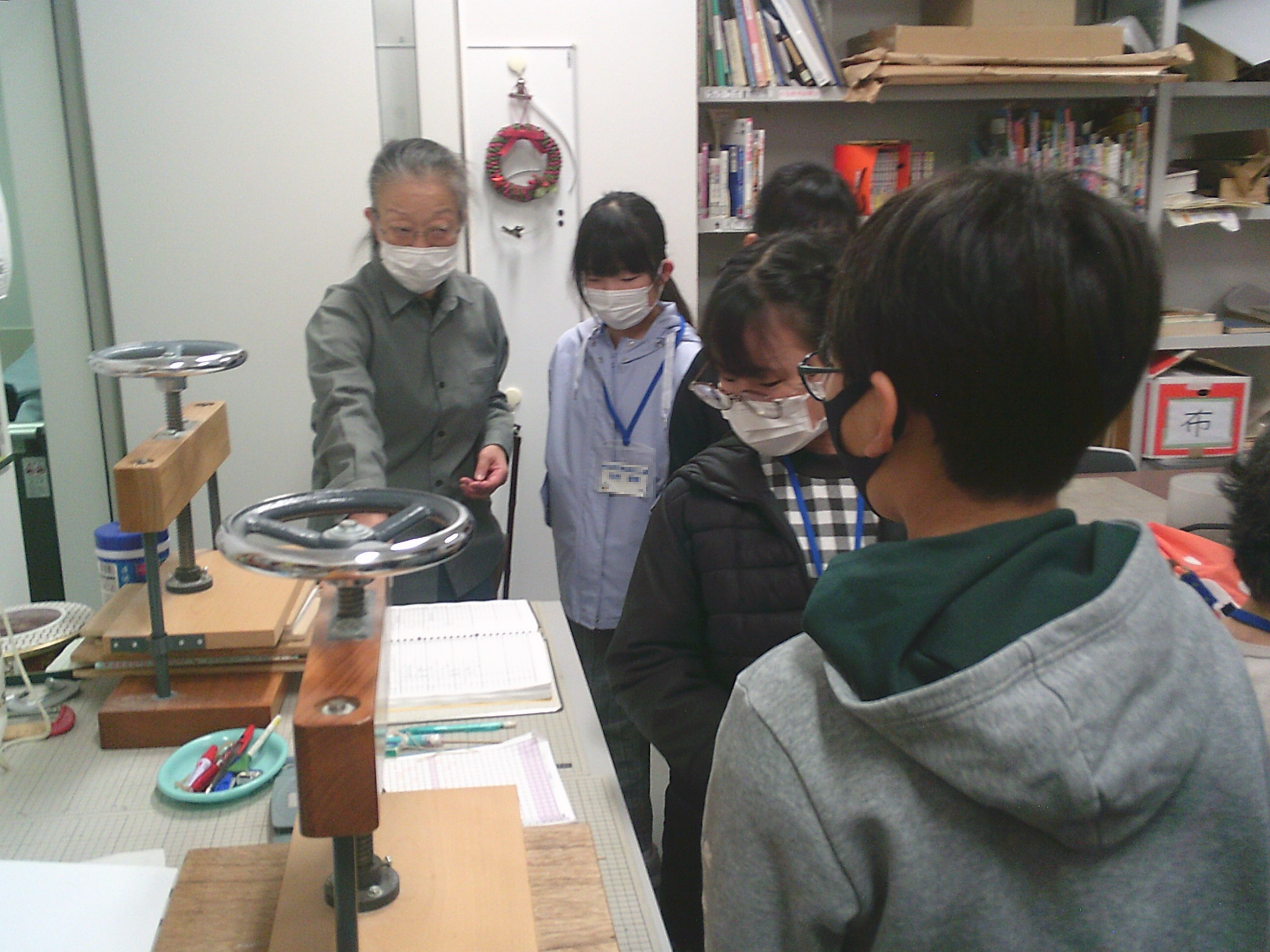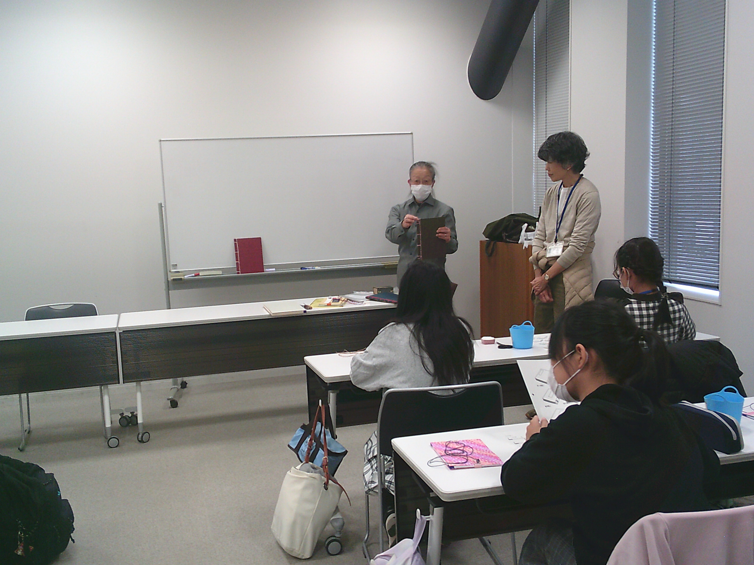 和綴じ本の完成後、館内の修理室を見学しました。