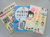 | だれでも読書を楽しむことができるように、さまざまな形の本を集めたコーナーです。 1992年にスウェーデンの図書館から始まりました。 さわる絵本や大きな文字の本、絵や写真を使ったやさしく読みやすい本などをそろえています。 読書バリアフリーについての本もあります。
